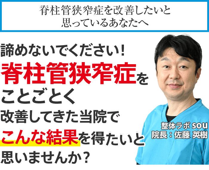私があなたの脊柱管狭窄症を改善するために全力で施術させていただきます。